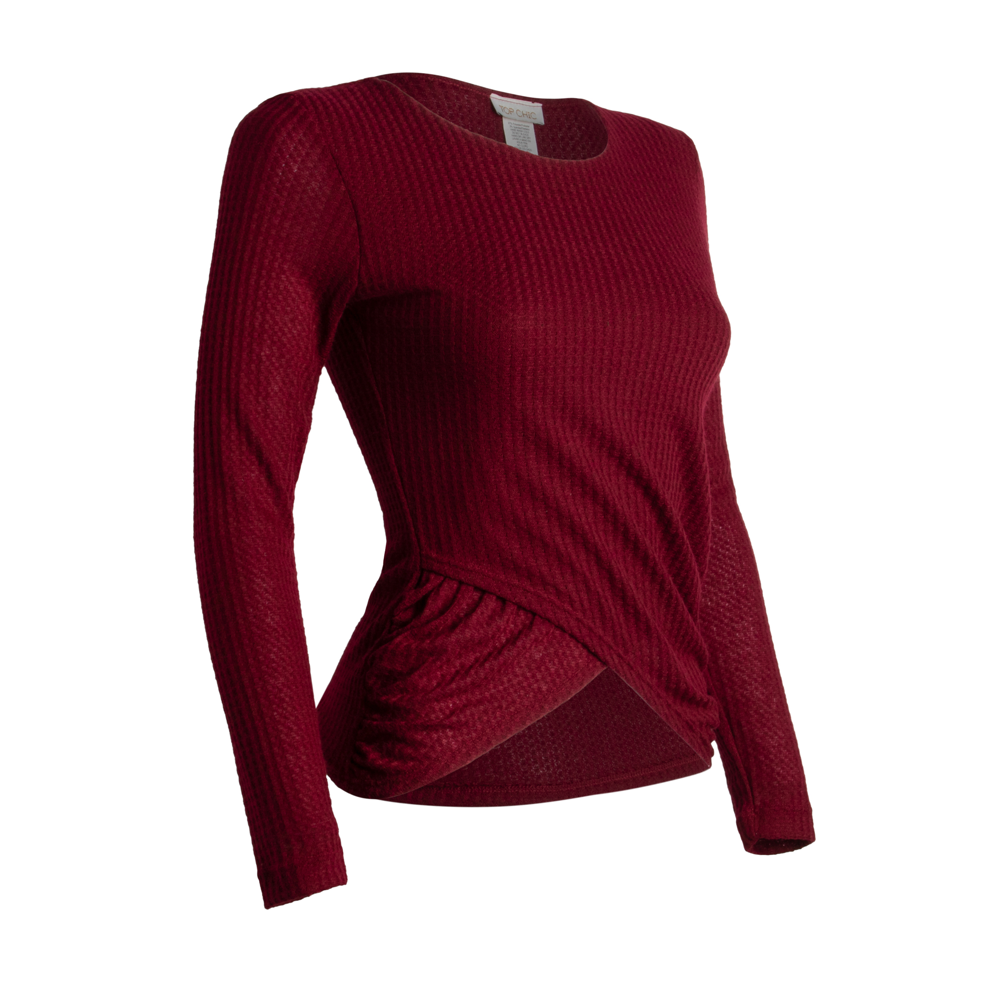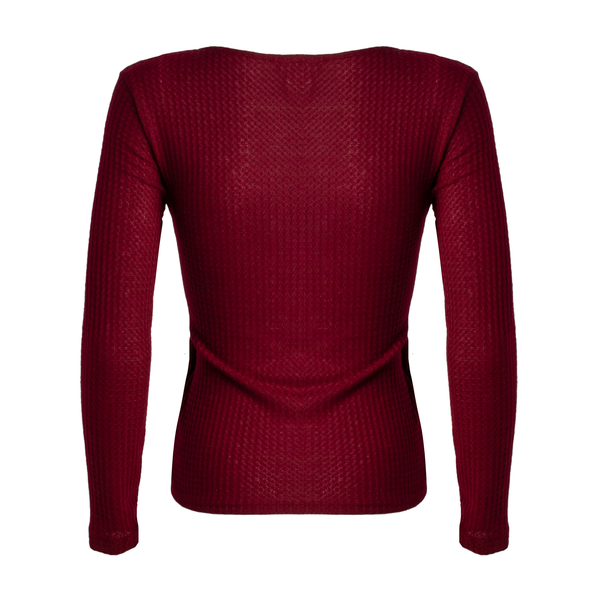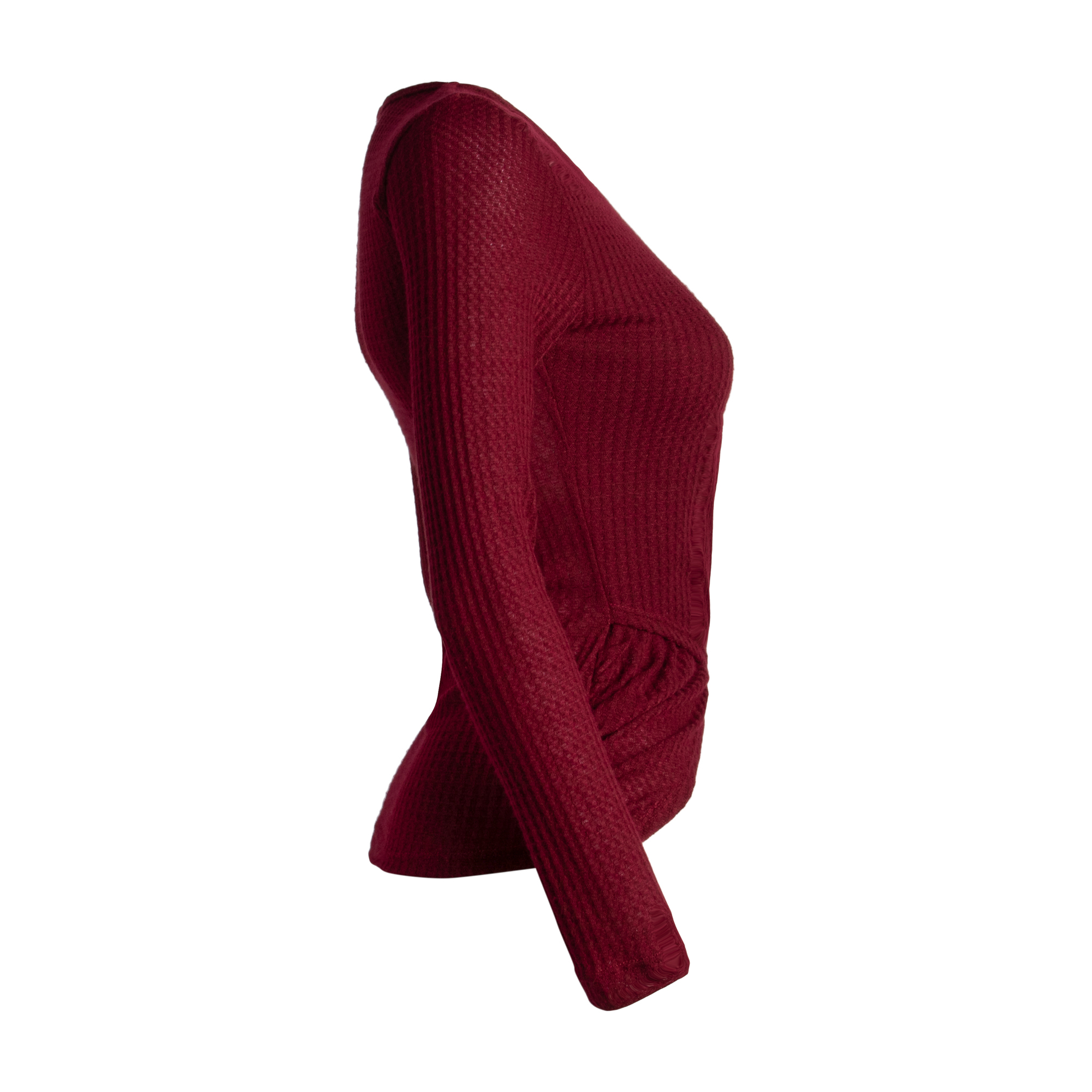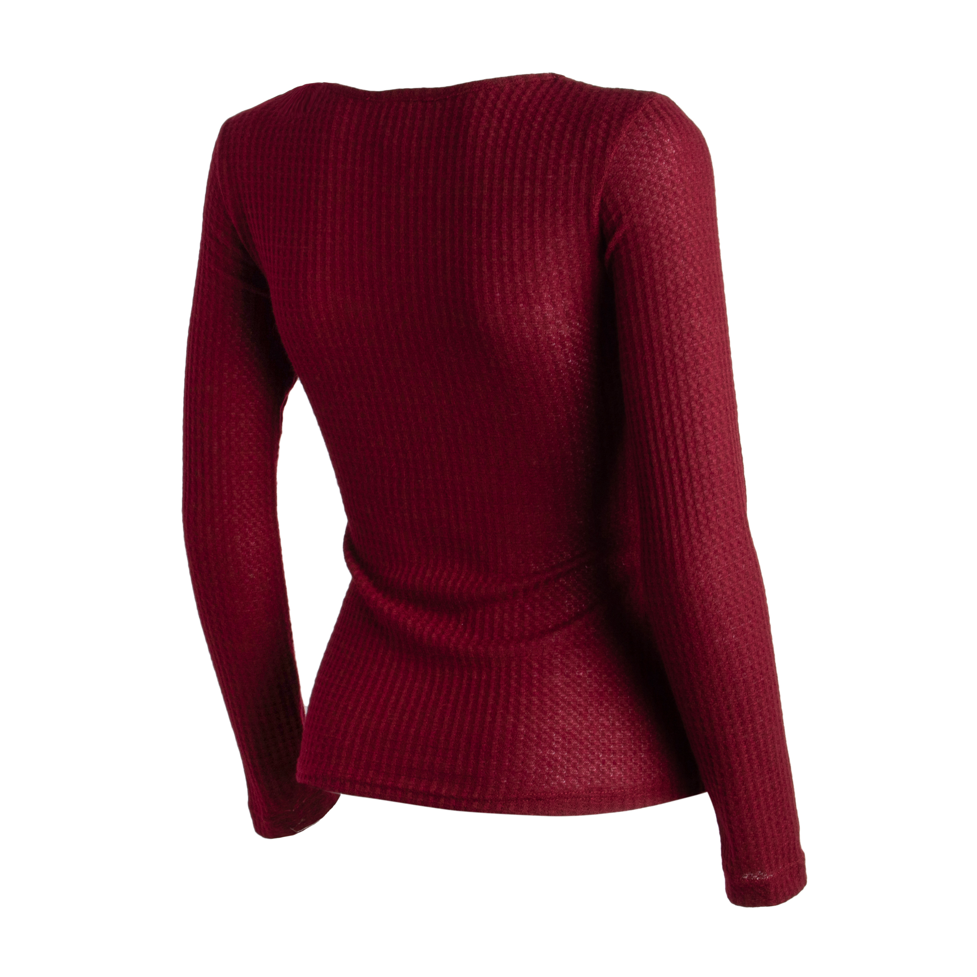 The wrap-style, fitted top flatters your silhouette and easily lends itself to layering with other clothing pieces. Knit fabric, poly-spandex blend, soft and ribbed with elastic stretch, providing perfect stretch where needed.
