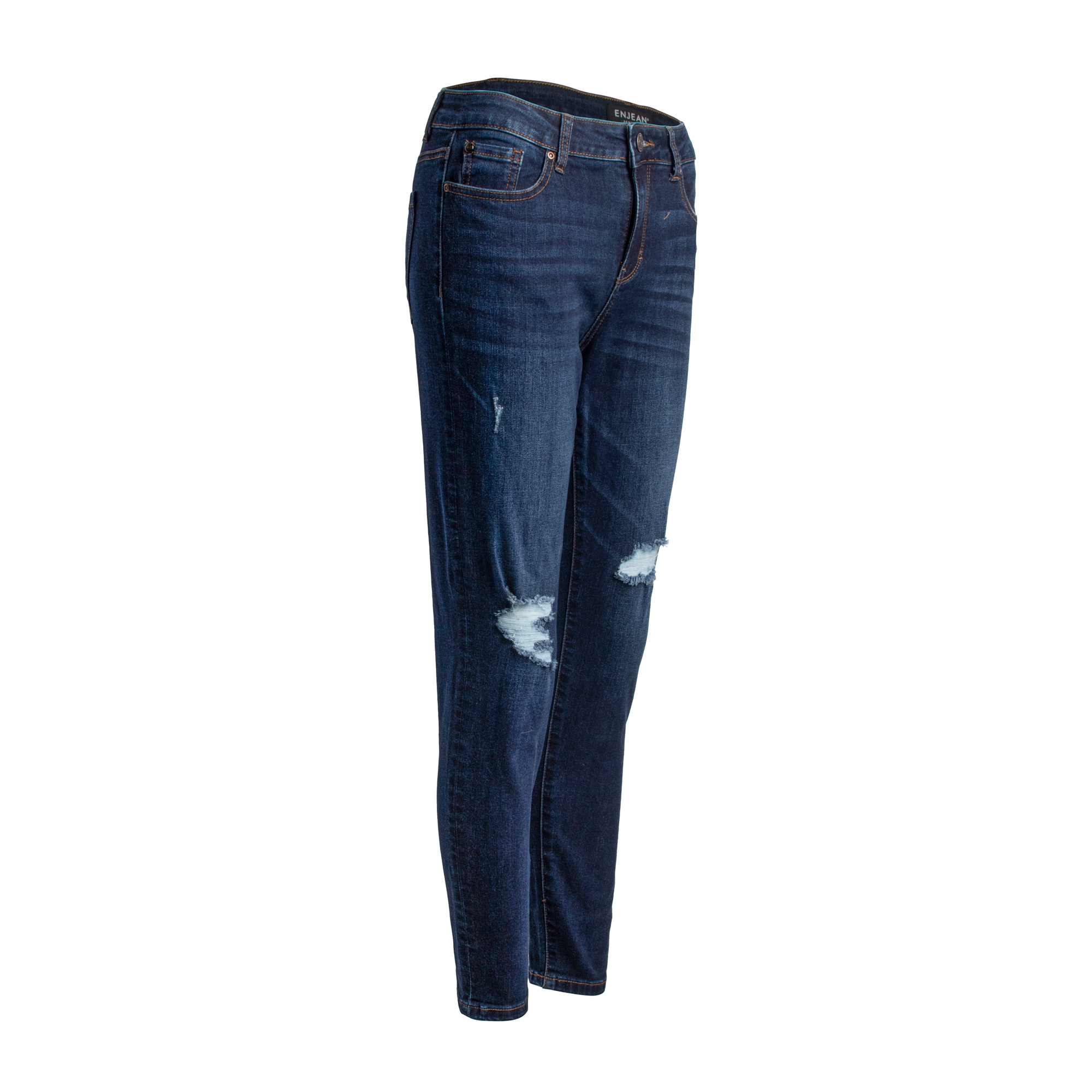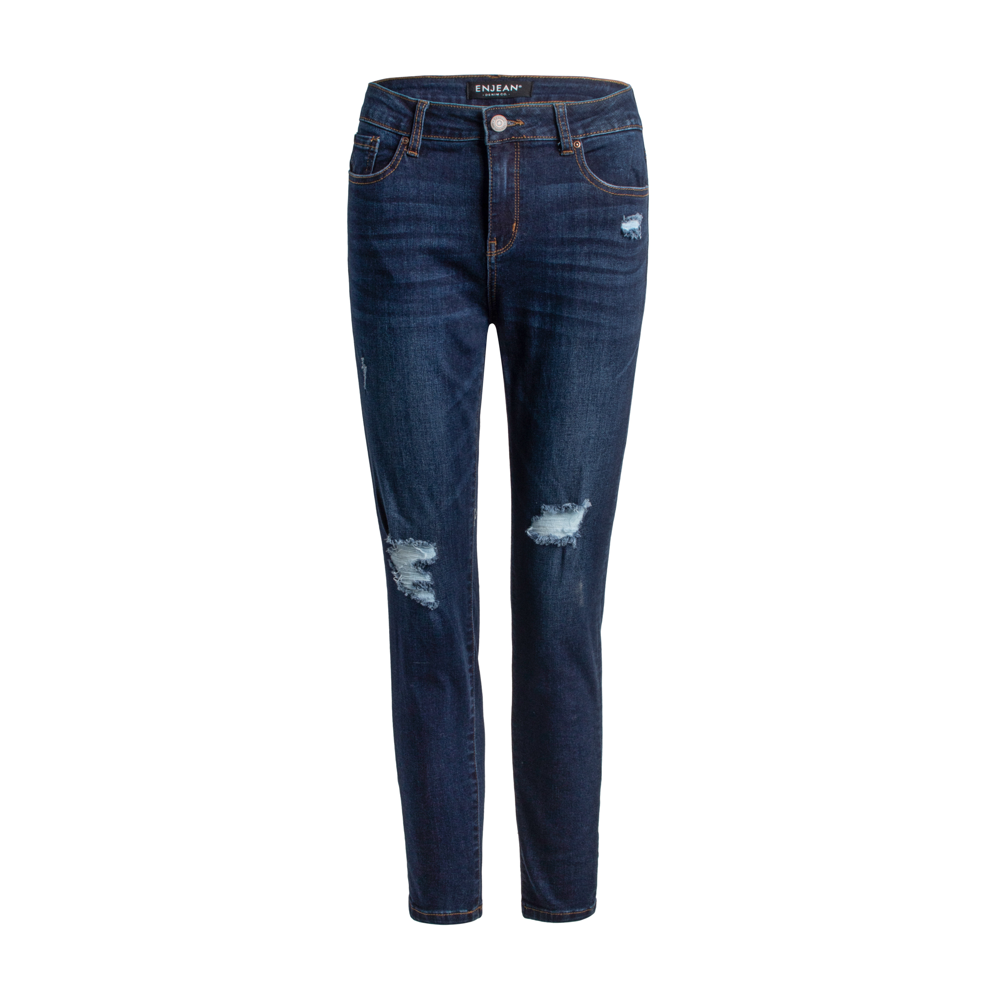 Mettant en vedette une fermeture avec bouton simple au devant et un look légèrement vieilli. Aux genoux, ce jean à taille haute est absolument un must pour votre garde robe! Pour un look impeccable, agencez- le avec une blouse ou un chandail et des bottillons!